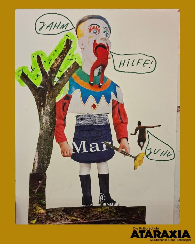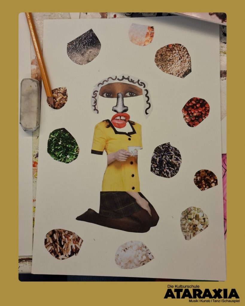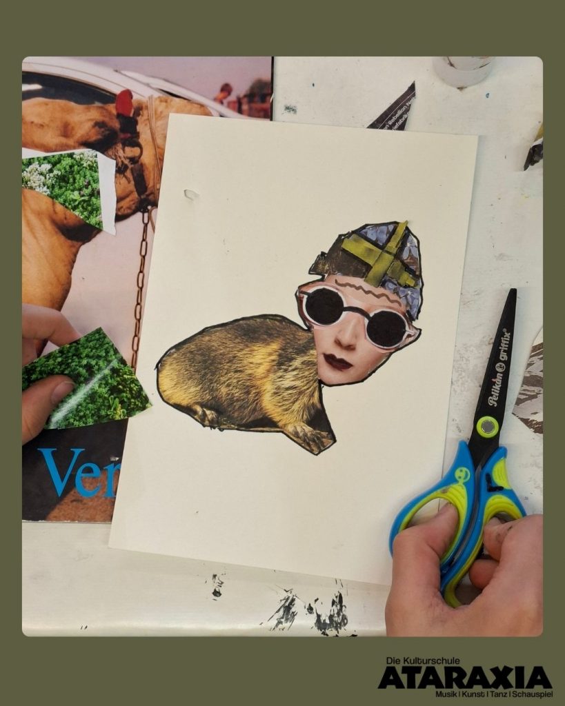 Diese Collagen sind in der Kreativwerkstatt (ab 10 Jahre) bei ATARAXIA entstanden! Die Kinder durften aus verschiedenen Magazinen Münder, Nasen und Augen ausschneiden und daraus neue Gesichter kleben und auch andere Ideen sind in diesem Prozess entstanden.